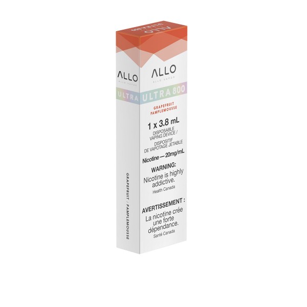 DescriptionGrapefruit ALLO Ultra Disposable Vape is a tangy bittersweet grapefruit pre-filled in a 3.8mL closed pod that will last up to 800 puffs!ALLO Brand Quick Links:Smaller 1.2mL Grapefruit ALLOA..
